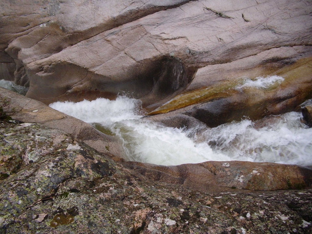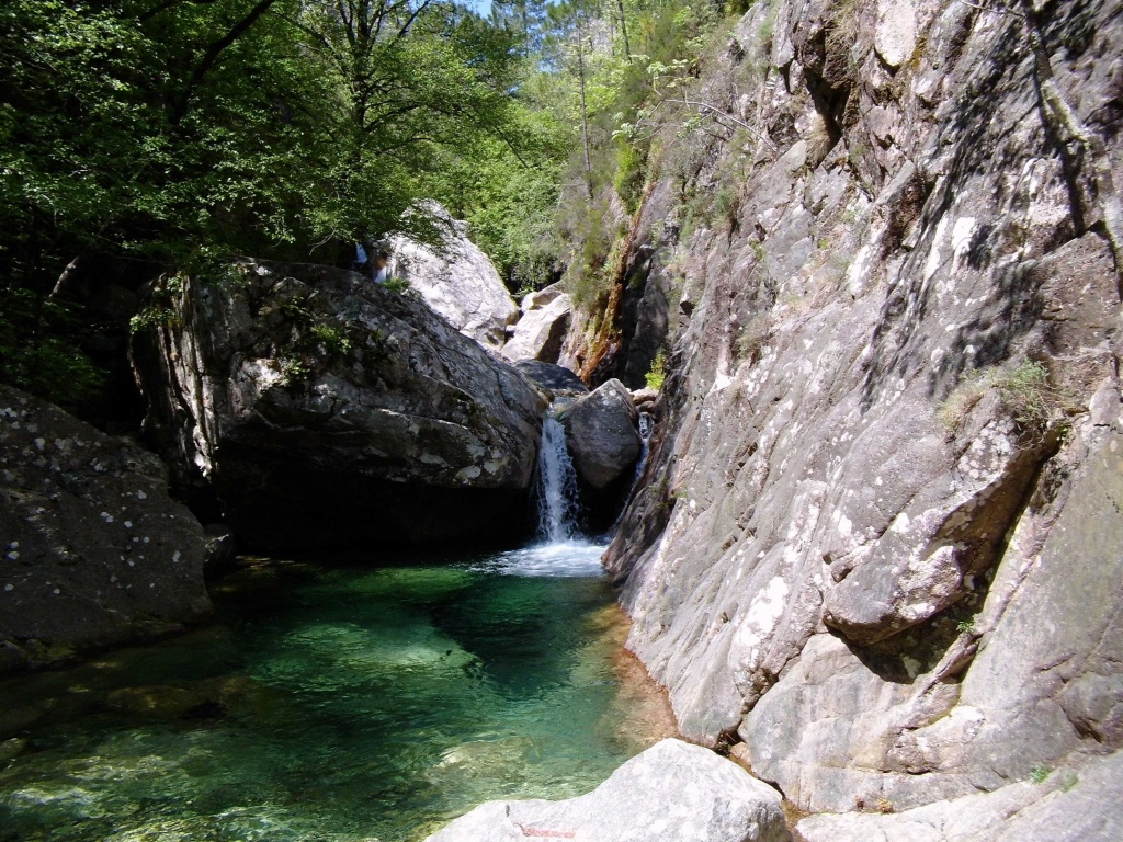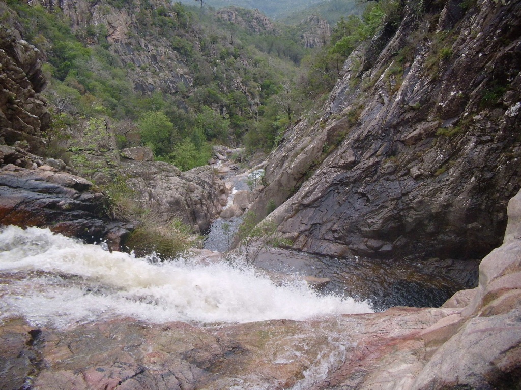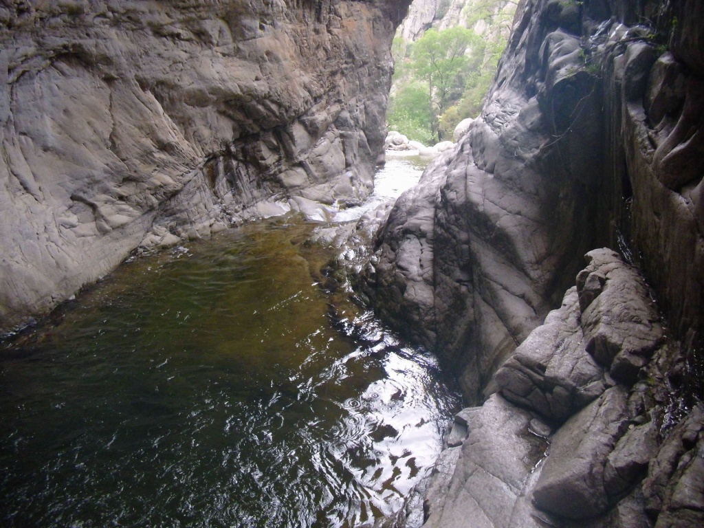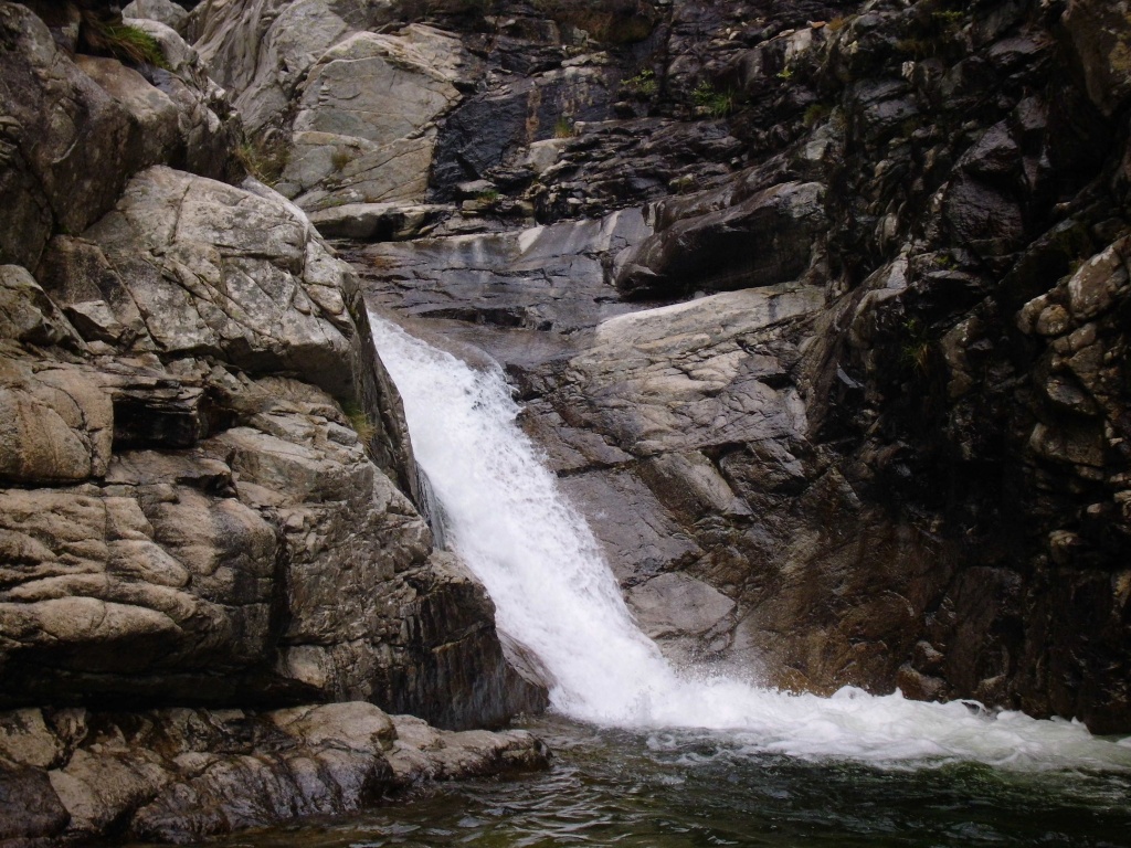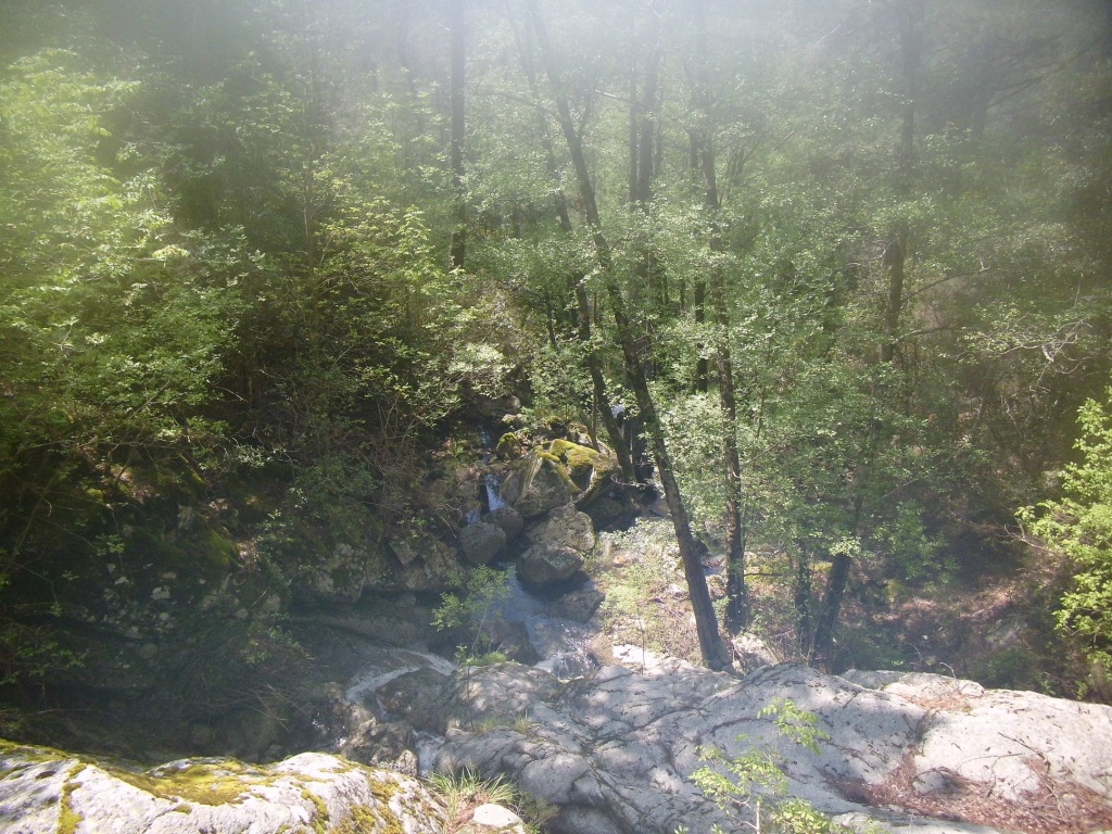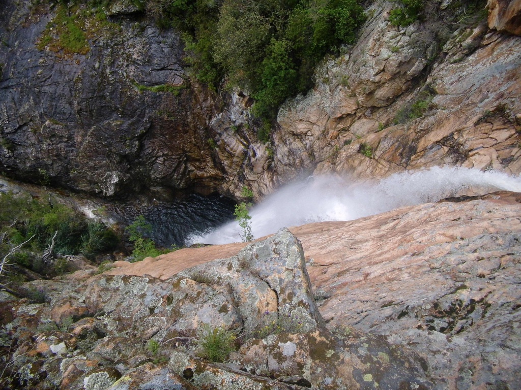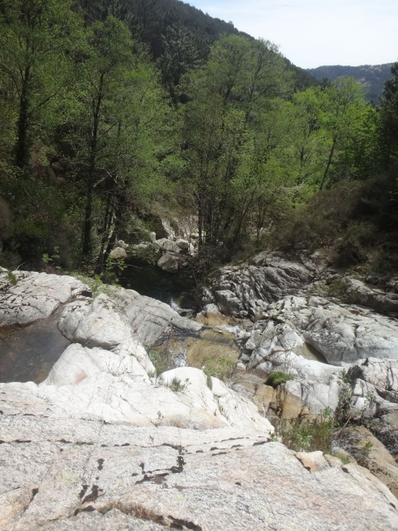 Als Alternativtour für diejenigen die in der Vacca noch nicht müde wurden sind wir in einem Fluß gegangen, an dem wir die Tage zuvor immer wieder Leute gesehen hatten, welcher uns aber nicht bekannt war. Um den Fluss zu erreichen fährt man von Solenzara in Richtung Bavella Pass und dann wo auf der rechten Seite der Ciuffatu rauskommt geht etwa 500m davor links der Gaglioli rein (siehe auch 1:25000 Karte). Zustieg zuerst dem Bachbett folgend bis man zu einer Gabelung kommt, dann dem linken Ast kurz folgen und dann einem schmalen Pfad den Hügel hinauf. Oben angekommen (nach etwa 15-20min) warten einige nette Canyoningstellen auf uns, ein gemütlicher Anfängercanyon.