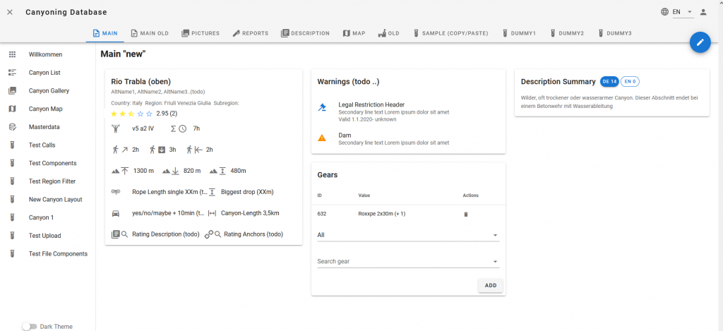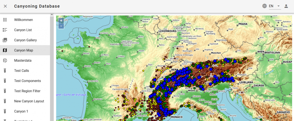 Nächste Schritte in der Umsetzung wären u.a. „Komplett-rewrite“ in Nuxt3/Vue3 mit TS gewesen sowie weiterer Ausbau der Features (aktuell ca. 60% „Feature-complete“). Für mich war wichtig ein Setup zu finden, wo wir zu mindestens 4 Leute sind, die daran arbeiten und sich gegenseitig puschen. Sonnst kann man ein Projekt dieser Größenordnung nicht auf lange Sicht gut betreiben. Sollten sich wieder ein paar „Freiwillige“ finden um das Projekt fortzuführen oder neu aufzusetzen bin ich gerne dabei, einfach über das Kontakt Formular bei mir melden. Aktueller Sourcecode (GPL-3.0 lizenziert) des letzten „Produktions-Builds“ ist für Interessierte hier verfügbar. Ein guter Startpunkt wäre sich die 101s von Nuxt3/TS und Laravel/PHP reinzuziehen. Die verwendeten Daten zur Darstellung kamen neben manuellen Eingaben von https://canyon.carto.net (CC BY-NC-SA 2.0 AT) und https://www.descente-canyon.com (CC BY-NC-SA 4.0).