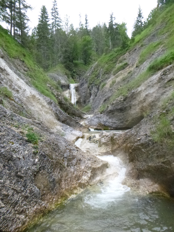 Anfahrt zuerst nach Lofer, dann hoch zu Loferer Alm. Parken z.B. bei Gasthaus Loderbichl (Erlaubnis fragen!) vor dem Mautschranken. Danach geht man zu Fuß den Wanderweg bis zur Bimalm. Kurz vorher quert der Wanderweg den Würmbach, dort ist der Einstieg. Es folgen einige Meter Bachgelatsche, dann kommt ein erster kleiner Sprung und der erste Abseiler mit Haken. Es geht weiter durch ein kleines Loch, dann über den Wasserfall, den man beim Aufstieg schon gesehen hat (wir hatten viele Leute dort, welche unter dem Wasserfall Fotos gemacht haben, aufpassen beim Abseilen bzw. Seilwerfen). Danach geht es durch ein paar Gumpen und nachfolgend mit 20-40m Abseilern im offenen Bachbett dahin. Abseilen manchmal an Doppelhaken mit billiger Baumarktkette dazwischen, manchmal auch von Baum mit Schlinge. Generell ist die Hakensituation aber zufriedenstellen und im Notfall könnte man sich immer einen Baum schnappen und von dort aus abseilen. Höchster Abseiler ist 40m, es reicht also z.B. 2x20m und 1x40m mitzunehmen. Es folgen etwa 5-7 größere Abseiler nach den Gumpen, dann wird es flach und die Tour ist im Mittelteil. Wir sind dort ausgestiegen, der restliche Teil ist angeblich nicht sehr lohnend. Dazu sind wir etwa 10min durch den Wald gequert (dem Bach folgen wäre auch möglich gewesen) bis man orthografisch rechts eine Wiese sieht. Diese quert man hoch bis zum Stall, man ist nun auf der Klausmaisalm und kann direkt vom Stall aus gemütlich einem Schotterweg folgend wieder auf den Aufstiegssteig zurück. Tour dauerte bei uns etwa 2h, Zustieg und Rückweg je etwa 30min. Wir hatten dann noch den nahe gelegenen Fischbach als Zugabe gemacht.