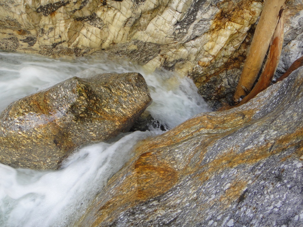 Am letzten Tag wollten wir was „Kleines“ gehen. Den Torrente Novarza. Naja, nach Topo auch nichts, was uns Stunden beschäftigt hätte. Weit gefehlt, kaum hatten wir uns in die Schlucht abgeseilt, waren ums erste Eck gelaufen nahm das Unheil seinen Lauf. Wir standen vor einem Lawinenkegel. Nicht schlimm! Einfach drüber und weiter! Nach dem ersten Kegel ließ der Zweite nicht lange auf sich warten. Und der Dritte. Und der Vierte. Und so weiter. Diese Berge aus Baumstämmen, Büschen, Mörgel, Steinen und Eismassen wurden von Kegel zu Kegel höher und die Stimmung sank entsprechend. Ich glaube, wir waren alle ganz schön angefressen, aber keiner ließ sich etwas anmerken. Nach knapp 7 Stunden hatten wir es dann geschafft. Tapfer!