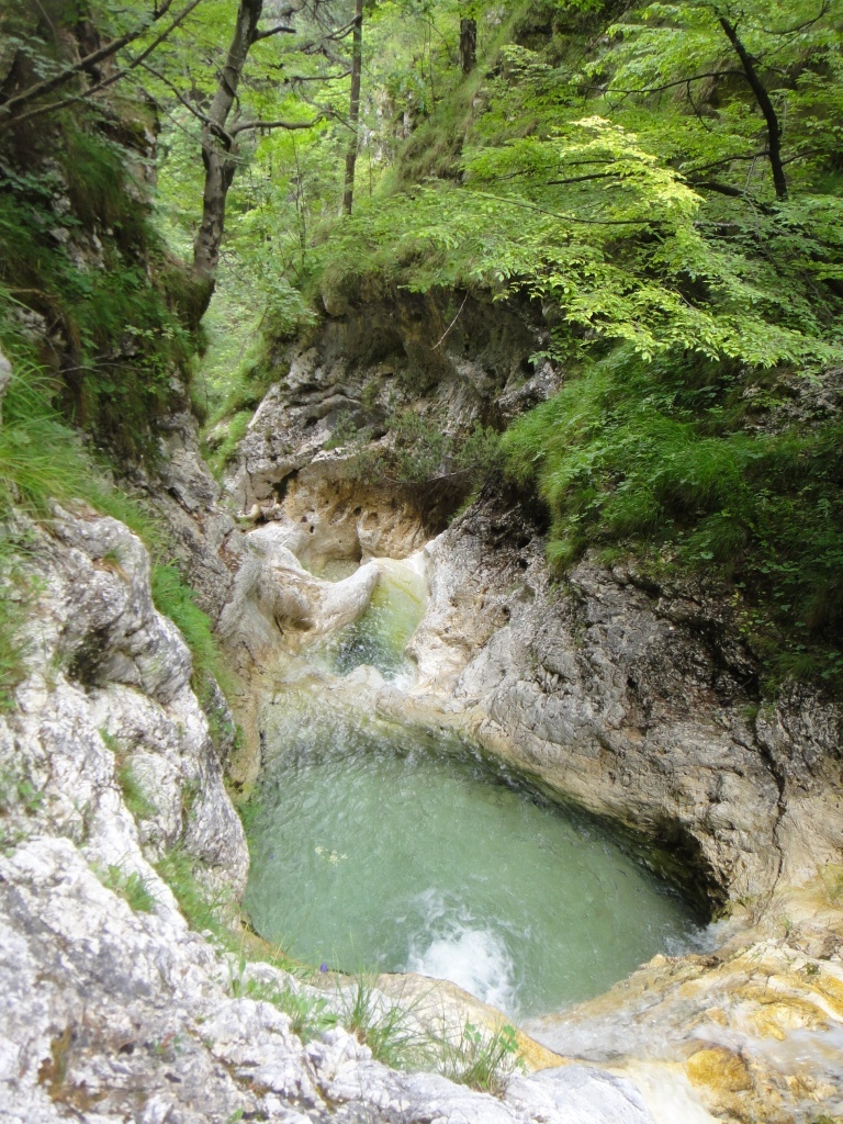 Eher kurze lohnende Schlucht mit 60m Schlussabseiler und netter Rutsche. Wasserstand Fella für Flussquerung beachten.
